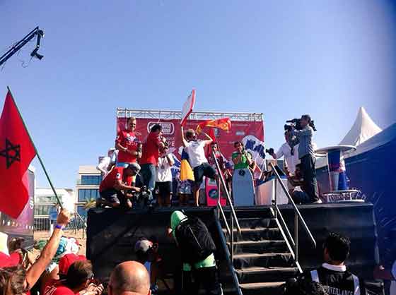 El francés nota la presión y una tras otra va quemando sus olas pero encuentra premio a su esfuerzo y se coloca segundo, con unas sumatoria de 14,17 pero que no es suficiente para la primera plaza, todo parecía indicar que el oro se quedaría en Casablanca, pero Cobo no se rindió y en su última ola y cercano a la conclusión de la manga, marcaba un 7,27 que cerraba la lucha por el título con Guillermo Cobo con un total de 15,1, segundo Brahim Iddouch 14.8, tercero el francés Martin Mouradian 14,17 y la cuarta plaza para Rory O’Dowd 9.57 aunque el resultado de la manga se conocería con los rides en la playa y esperando una última ola del marroquí que al final no fue suficiente para arrebatarle la primera posición al buguero de La Garita.