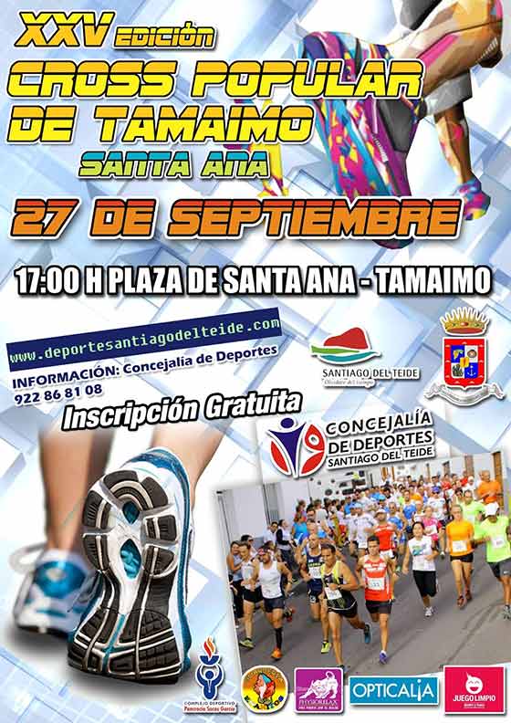 Cerca de 120 atletas participarán, este domingo 27 de septiembre desde las 17:00 horas, en la XXV edición del Cross Popular Santa Ana de Tamaimo que está organizado por el Ayuntamiento de la Villa Histórica de Santiago del Teide, a través de la concejalía de Deportes que dirige Guillermo Évora en colaboración con diferentes entidades deportivas y firmas comerciales.