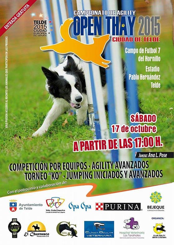 La “Agility Open Thay 2015, Ciudad de Telde” se iniciara con los perros de mayor nivel, luego se realizara una prueba K.O. Purina, que consiste en duelos entre dos perros a la vez y que siempre resulta muy atractivo para el público, para terminar con los perros que se están iniciando en este deporte y que tiene como objetivo demostrar que todos lo pueden practicar.