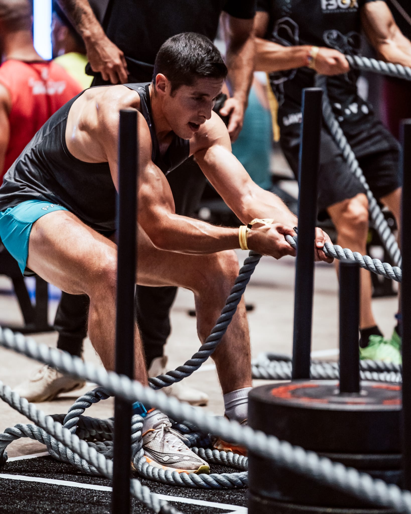Por delante, el 'Track 1' que constó de 800 metros en la máquina de ski, 80 repeticiones de balón a la diana y 80 saltos a la caja pasando al otro lado; el 'Track 2' tuvo 800 metros de remo, 80 metros de trineo (con empuje y tracción) y 80 metros de desplazamiento de mancuernas en cada brazo; el 'Track 3' reunió 1.600 metros en la Rogue Echo Bike, 80 metros de burpees saltando hacia delante y 80 metros de zancada con saco tras nuca.
