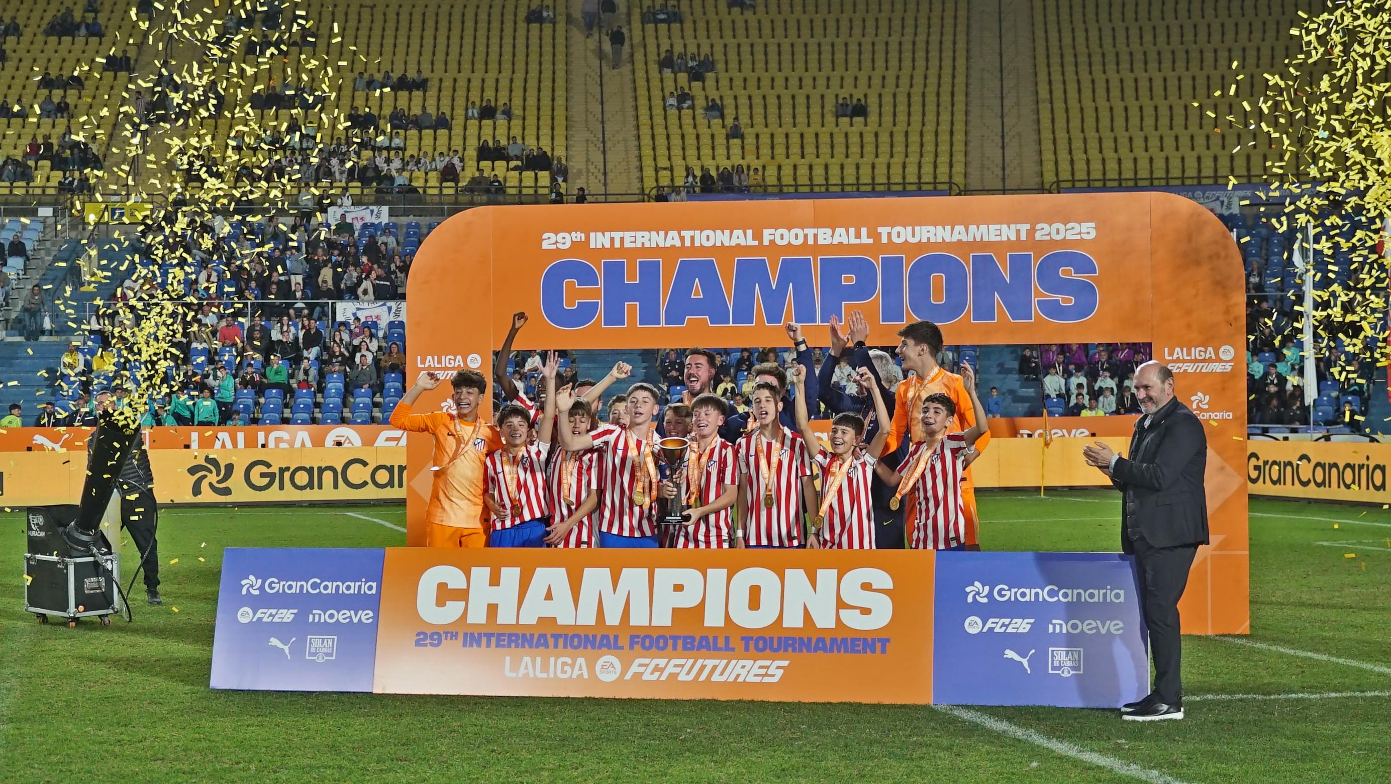 La XXIX edición del Torneo Internacional LALIGA FC FUTURES 2025 ha coronado en Gran Canaria a su campeón, se trata del Atlético de Madrid, que ha vencido al Villarreal CF en una impresionante final por 1 a 0. El equipo colchonero consigue así su quinto título de este torneo dos años después de la última vez que se proclamara campeón.