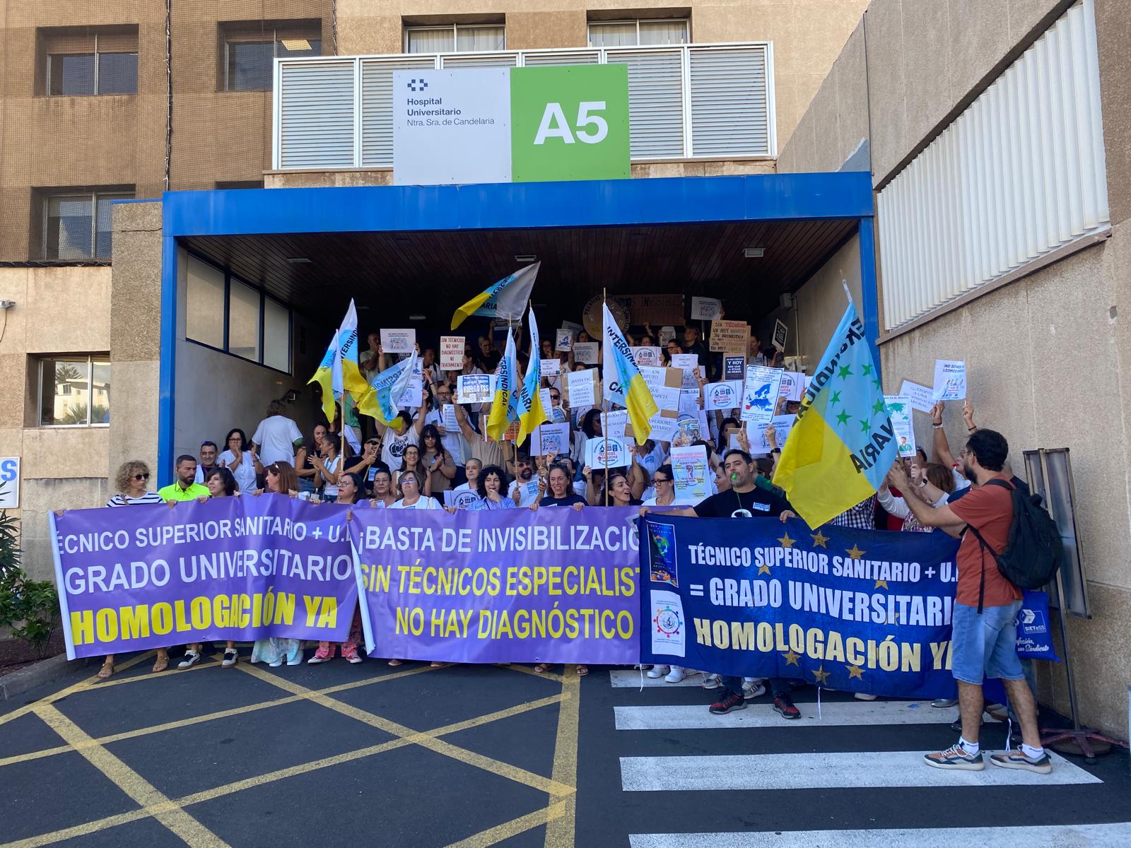 En el Hospital Universitario Nuestra Señora de Candelaria (HUNSC), la huelga ha sido masivamente secundada por el personal técnico superior, especialmente en los laboratorios y servicios de radiodiagnóstico, que se encuentran operando únicamente con servicios mínimos. Esta situación está afectando al funcionamiento normal del centro, con retrasos en pruebas diagnósticas e interrupción de procesos rutinarios, lo que pone de manifiesto la relevancia del papel de este colectivo en el sistema sanitario.