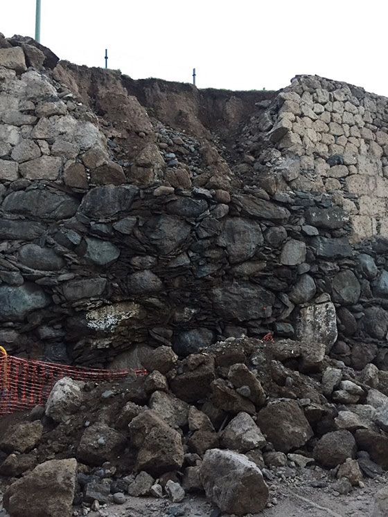 Desde el grupo municipal Unidos por Gran Canaria se denuncia que el gobierno tripartito mantiene la finca de Dominguito abierta, mientras parte del muro que la sostiene está derrumbado.