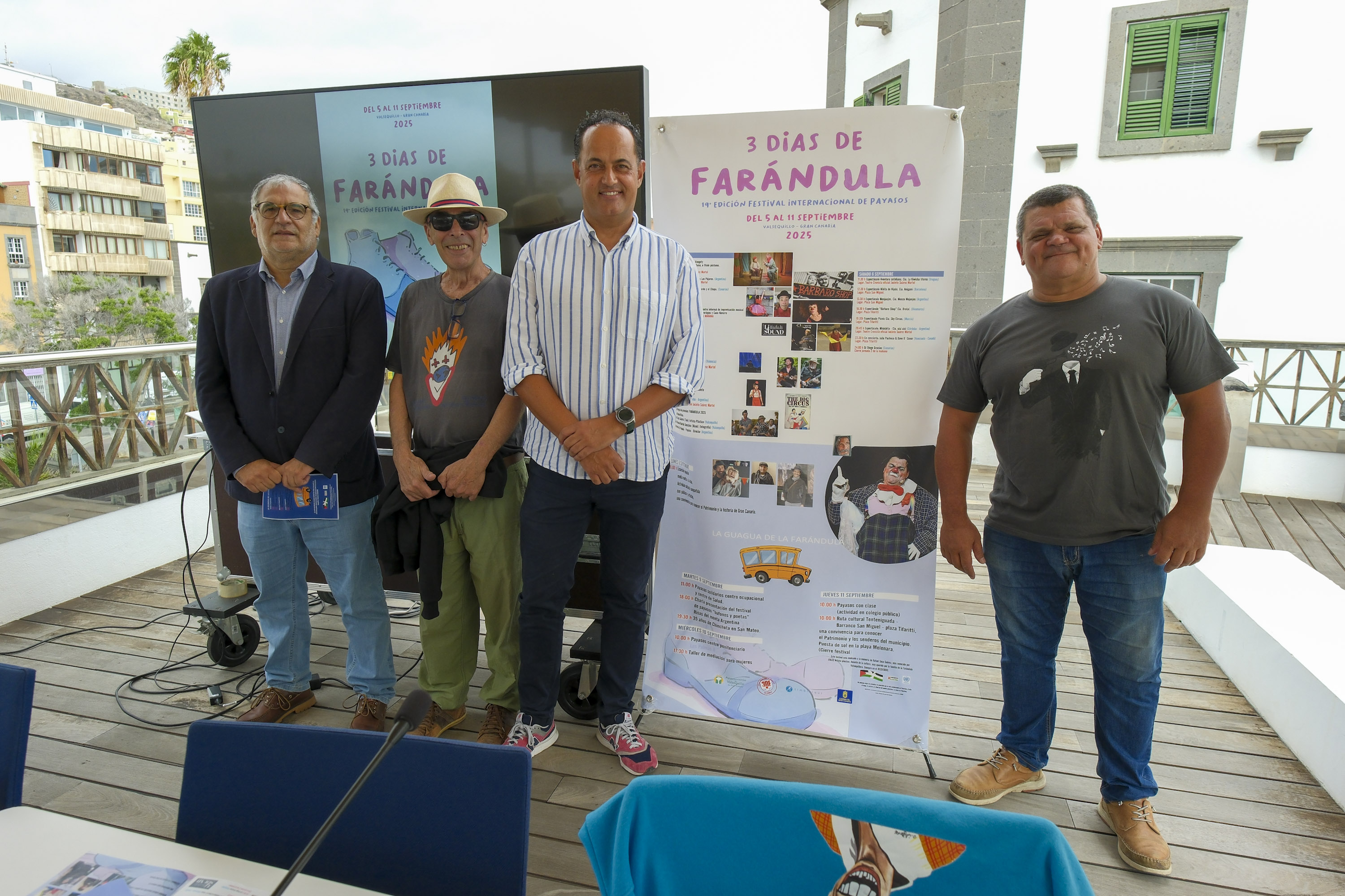 En la mañana de hoy martes el director insular de Cultura del Cabildo, Serafín Sánchez, y el concejal del área de Valsequillo, José Juan Pérez, presentaron en rueda de prensa el programa de espectáculos y actividades que, comandados bajo la batuta de Luis Monzón, conocido artísticamente como el payaso Chincheta, volverán a llenar las calles y plazas de citado municipio con el humor más universal.