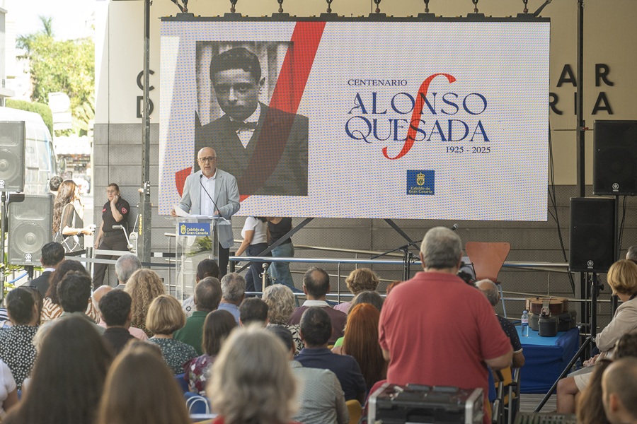 El legado de uno de los mayores escritores que ha dado nuestra isla nos ha convocado y nos ha proporcionado la ocasión de preguntarnos por el verdadero sentido de la palabra. Con motivo del centenario del fallecimiento de Alonso Quesada, el Cabildo se ha ataviado con los ropajes de la literatura. Fragmentos de sus textos y poemas, la proyección del audiovisual ‘Crónicas de la ciudad y de la noche’, una exposición en la cristalera de la sede del Gobierno de la isla y la iluminación nocturna de su torre racionalista con la imagen del escritor -elementos que se mantendrán hasta el 18 de noviembre- recordarán su figura y revestirán su fachada. Todo ello en el marco del programa conmemorativo que nos sirve para tornar la ausencia en una presencia cada vez mayor y necesaria.