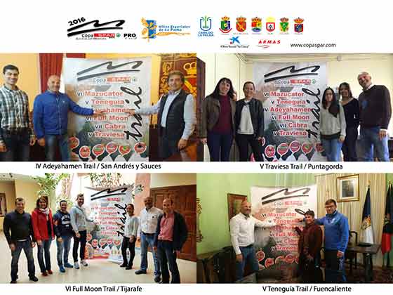 El primer acto de presentación tuvo lugar en el municipio de Fuencaliente con la V edición de la Teneguía Trail. En representación de la corporación local asistieron la concejal de deportes del ayuntamiento de Fuencaliente, Laura Pérez, el técnico de deportes, Ricardo Pérez y por parte de la organización el director técnico de la Copa SPAR, Iván Benítez.