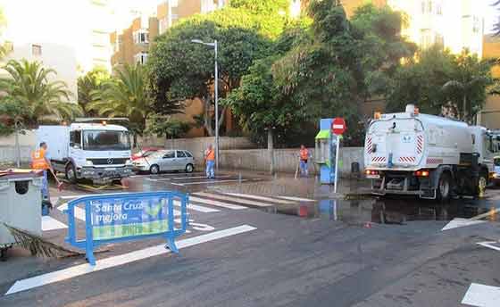 La acción se desarrolló en las calles Dácil Vilar Borges y Simbad de este barrio del Distrito Ofra-Costa Sur. Siete trabajadores de la compañía concesionaria de limpieza, auxiliados por tres vehículos, actuaron de forma intensiva en distintas zonas que habían sido inspeccionadas previamente por los técnicos municipales.