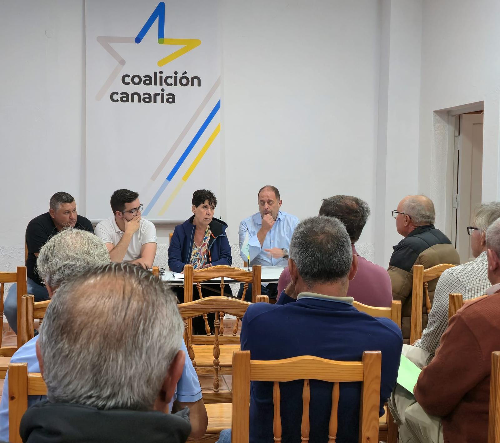 Coalición Canaria de Arico celebró recientemente una reunión de trabajo en el comité local junto a personas vinculadas al sector primario y a la gestión hídrica del municipio, en un encuentro en el que participaron el portavoz nacionalista en Arico, Víctor García, la consejera de Medio Natural del Cabildo de Tenerife, Blanca Pérez, y el director insular de Residuos, Alejandro Molowny.