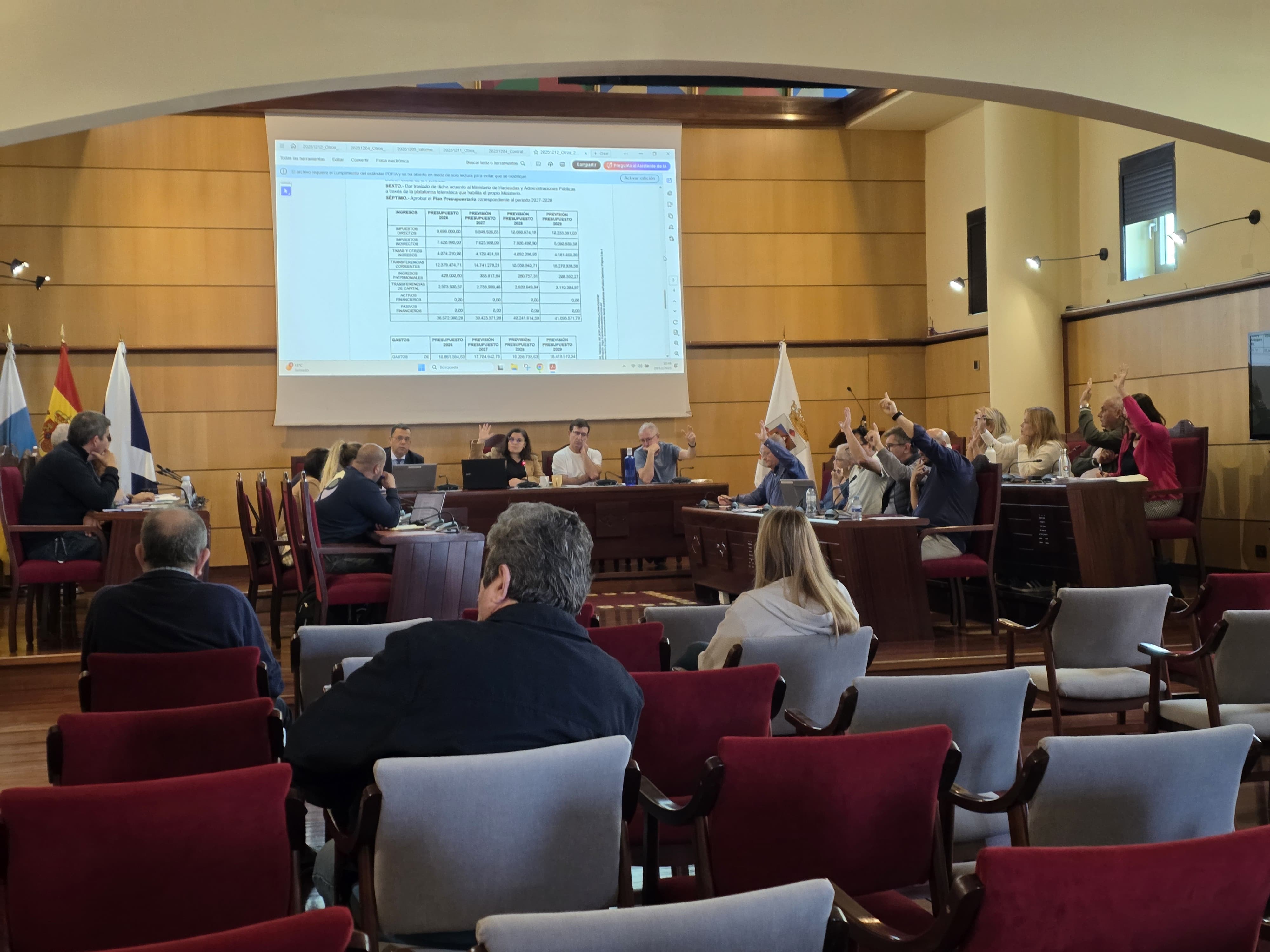 El Pleno ordinario del Ayuntamiento de Candelaria aprobó este lunes, 29 de diciembre, de forma inicial, el Presupuesto Municipal para el ejercicio 2026, que asciende a 35.545.504,37 euros, lo que supone un incremento del 6,1 % con respecto a las cuentas de 2025