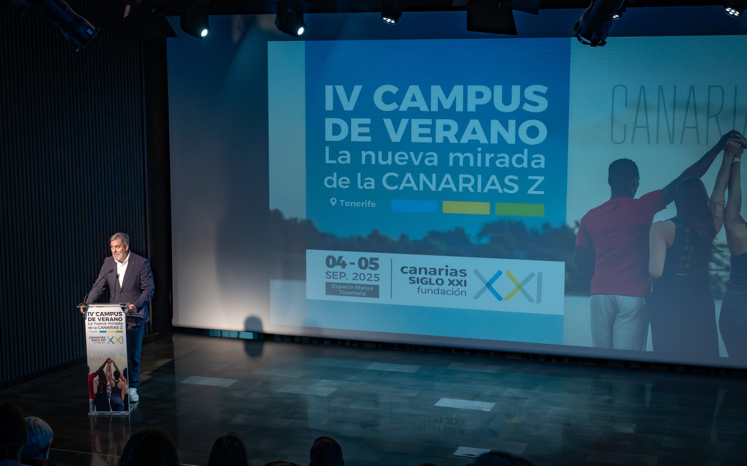 El secretario general de Coalición Canaria y presidente de Canarias, Fernando Clavijo llamó este viernes a trabajar a favor de un pacto para las generaciones futuras. En su intervención en la clausura del IV Campus de Verano de la Fundación Canaria Siglo XXI propuso un pacto “adaptado a nuestra realidad y que recoja las inquietudes y demandas actuales de la de la Generación Z, verdadera protagonista de nuestra sociedad y la mejor intérprete de lo que sucede y está por suceder”.