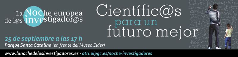 Durante la tarde del viernes 25 de septiembre de 2015 la ciencia saldrá a la calle a través de experimentos, juegos, talleres, demostraciones y encuentros con científicos para niños, jóvenes y adultos. La cita será en el Parque Santa Catalina (frente al Museo Elder), a partir de las 17.00 horas. La Noche Europea de L@s Investigador@s es un proyecto de divulgación científica promovido por la Comisión Europea dentro de las acciones Marie Sktodowska-Curie del programa Horizonte 2020, que tiene lugar simultáneamente en más de 350 ciudades europeas desde 2005.
