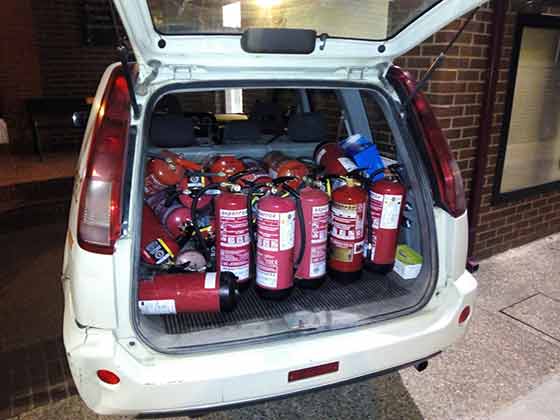 En estos días desde UniónGC tenemos conocimiento que en muchos de los acuartelamientos de España sobre todo en los de la comunidad autónoma de Castilla y León se están trasladando los extintores obligatorios de las dependencias policiales y de las viviendas para ser entregados a la empresa concesionaria ya que esta no pasa por dichas dependencias para recogerlos, no, sino que se retiran los extintores de los diferentes acuartelamientos para ser trasladados a un punto central de recogida que suele coincidir con la cabecera de la compañía.
