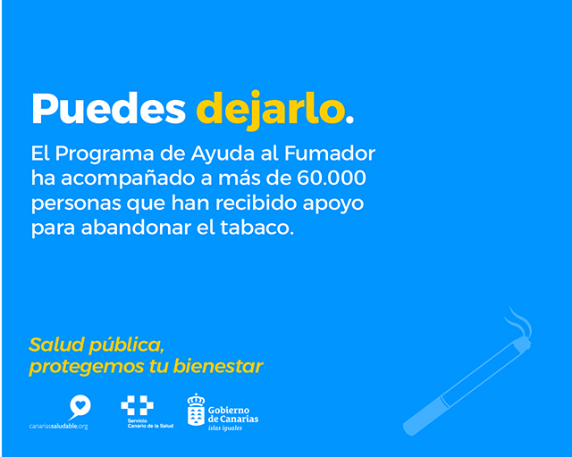 ‘Puedes dejarlo. El programa de Ayuda al Fumador ha acompañado a más de 60.000 personas que han recibido apoyo para abandonar el tabaco’.