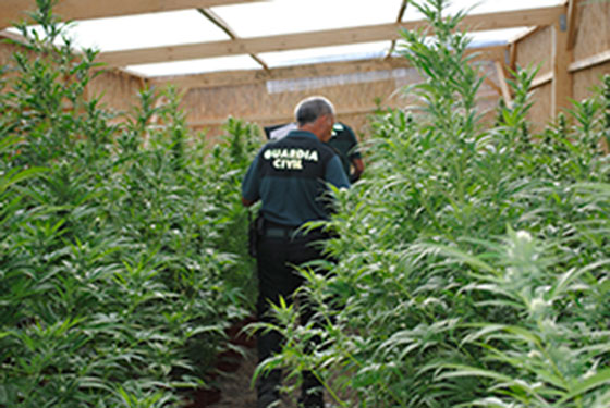 El servicio se inicio cuando los agentes fueron de la localidad recibieron la confidencia de un posible acto de cultivo en una finca rural del municipio. Una vez recibida esta noticia se localizó una vivienda aislada en la zona conocida por Los Cazadores cercano al barrio de Sabina Alta y donde los agentes que investigaban el caso comprobaron como una persona se dirigía todos los días mañana y tarde para realizar labores agrícolas de cultivo sin que se apreciara desde el exterior de que producto se trataba lo que motivó que las sospechas de la existencia de un cultivo ilegal era previsible. Solicitada la entrada y registro en el Juzgado de Güímar y efectuada se aprendieron las 255 plantas de marihuana (Cannabis Sativa) en un tamaño que oscilaba entre los 80 y 220 centímetros. En la vivienda el arrestado había acondicionado un secadero. Sorprendía a su vez el grado de profesionalidad en los actos de cultivo (medidores de la calidad de tierra, abonos específicos, equipos de calor, etc.). Así como luego en la recolección donde en diferentes recipientes era conservada la droga ya dispuesta para el consumo.