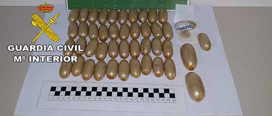 Posteriormente fue trasladado al Hospital General de Lanzarote, en Arrecife, donde finalmente expulsó 44 cápsulas de heroína en forma de bellota, que arrojaron un peso de 655 gramos, siendo inmediatamente detenido por un delito contra la salud pública.