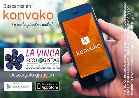 LA VINCA Ecologistas en Acción pone a disposición de soci@s, simpatizantes, colaboradores/as y del público en general a través de IOS en la Apple Store y para Android en el Google Play la aplicación Konvoko, con la misma podrán estar informad@s sobre las diversas actividades que desarrolla el colectivo ecologista norteño, artículos publicados en su página web: www.lavinca.org, así como de las acciones, propuestas y/o denuncias promovidas por LA VINCA EeA y demás colectivos integrantes del movimiento ecologista en las islas.