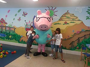 Por otra parte, con motivo de la puesta en escena de esta macroproducción en Tenerife, uno de sus personajes más emblemáticos, Papá Pig, visitó ayer a los niños y niñas hospitalizados en la planta pediátrica del Hospital Universitario de Canarias, a los que obsequió con un set de regalos para cada uno. La visita estuvo cargada de emotividad y alegría e hizo que por un día los pacientes más pequeños olvidaran su enfermedad.