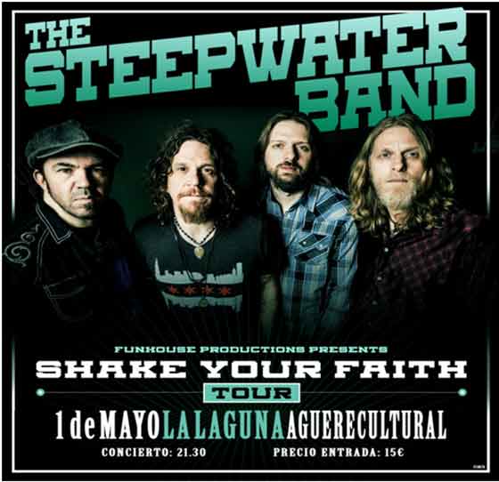 Tras el buen sabor de boca que nos dejaron en su paso por la isla en los años 2011 y 2014, THE STEEPWATER BAND (USA) vuelven a España con otra extensa gira que les llevará por las principales ciudades del país para presentar ante el público su nuevo trabajo en estudio, SHAKE YOUR FAITH (Diamonds Days, 2016). Y, como no podía ser de otra manera, volverán a hacer escala en la isla de Tenerife para desplegar todo su poderío sobre las tablas del Aguere Cultural, el domingo 1 de mayo, día previo al festivo lunes, en que se celebra el Día Internacional del Trabajador. Shake your faith es el primer trabajo de estudio con la actual formación de la banda, después de la inclusión de Eric Saylors como segunda guitarra. Con esta incorporación, la banda de Chicago afianza su característico estilo musical, basado en una potente base rítmica defendida por Joe Winters (Batería) y Tod Bowers (bajo), quienes dan suelta a las dos guitarras de la banda, Jeff Massey y Eric Saylors; una poderosa banda del mejor Rock’and’Roll con tintes de blues y psicodelia.