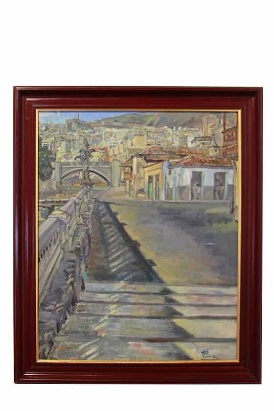 Una de las obras donadas, 'Puente Serrador', es un óleo sobre lienzo (58 x 73'5 cm) en el que se observa la vista del puente Serrador y las casas junto a la vera del Barranco de Santos en la capital tinerfeña. La obra ha formado parte de varias exposiciones en el Círculo de Bellas Artes de Tenerife y en las Jornadas Culturales de Garachico en 1977. El estado de conservación del óleo ha requerido una restauración realizada por Silvano Acosta, con cargo al Ayuntamiento de Guía de Isora.