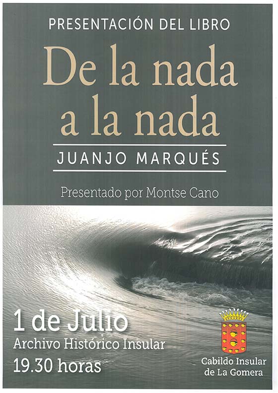 “De la nada a la nada” es una obra escrita por Juanjo Marqués, reportero gráfico de TVE en La Gomera, y que será presentada este viernes a las 19:00h en la sede del Archivo Insular de La Gomera. La presentación estará a cargo de la escritora Montserrat Cano, quien acompañará al autor en el acto.