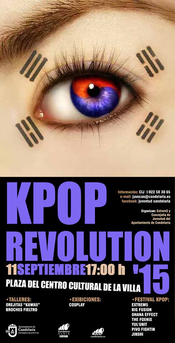 La cultura coreana desembarcará en Candelaria el próximo 11 de septiembre con “Kpop Revolution ´15”. La Plaza del Centro Cultural de la Villa acogerá una muestra de “Korean pop music” género musical de Corea del Sur que incluye diversos estilos musicales como música dance electrónica, hip hop, rap o rock.