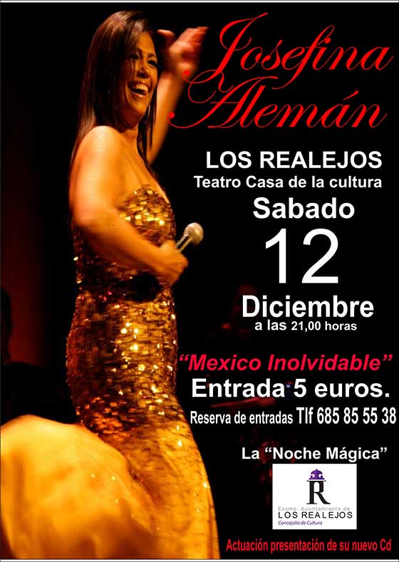 La artista Canario Venezolana Josefina Alemán presentara en el Auditorio de la Casa de la Cultura de los Realejos,Avenida tres de Mayo nº 5, su nuevo trabajo discográfico: "Concierto en Vivo"