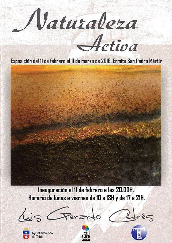 La Ermita de San Pedro Mártir acogerá del 11 de febrero al 11 de marzo una exposición pictórica del lanzaroteño Luis Gerardo Cedrés. La muestra, organizada por la Concejalía de Cultura, lleva como título Naturaleza Activa y acercará al visitante al mundo de vivencias del artista, la tierra y el mar.