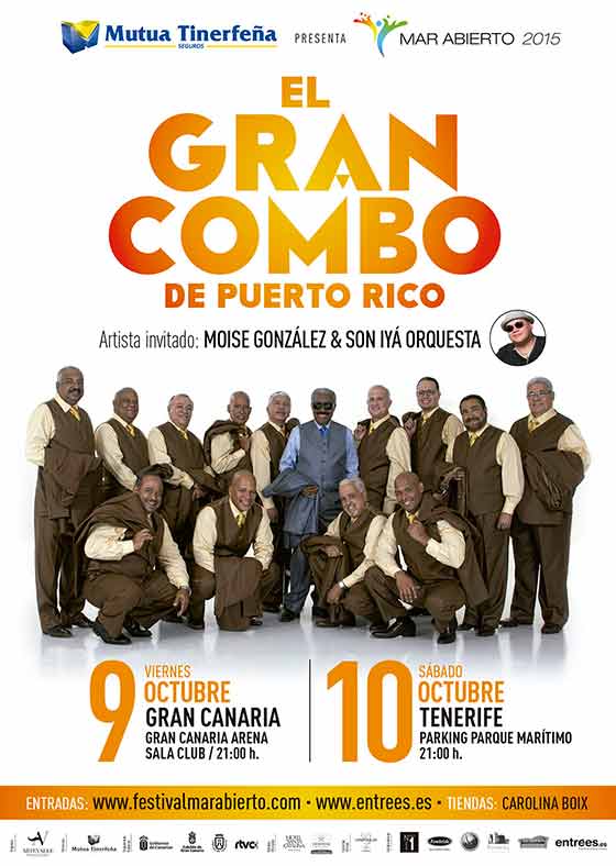 El Festival Mar Abierto continúa con su programación de 2015 y en esta ocasión nos presenta, en un doble concierto en Gran Canaria el 9 de octubre y en Tenerife el 10 de octubre, al Gran Combo de Puerto Rico, la orquesta de salsa más importante del mundo. La Universidad de la Salsa llega a Canarias con su Tour Echar Pa’lante que nos ofrecerá los nuevos temas de la banda, así como los grandes éxitos que le han llevado a ocupar ese lugar destacado en el panorama musical.
