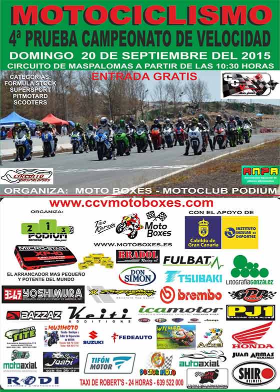 El CCV MotoBoxes 2015 “Trofeo Cabildo de Gran Canaria” disputa este fin de semana la cuarta y última carrera de la temporada, de la especialidad de velocidad, en el Circuito de Maspalomas