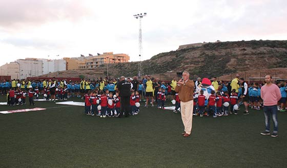 El campo de fútbol de El Médano acogió el pasado viernes 30 de octubre la gala de presentación de la escuela municipal de fútbol de Granadilla de Abona que movilizará a un total de 715 niños y niñas para la temporada 2015-2016. El acto contó con la presencia del alcalde del municipio Jaime González Cejas, y el concejal de Deportes, Nacho Mendoza Morales, y demás miembros de la corporación municipal, así como, padres, familiares, amigos y responsables de la escuela municipal.