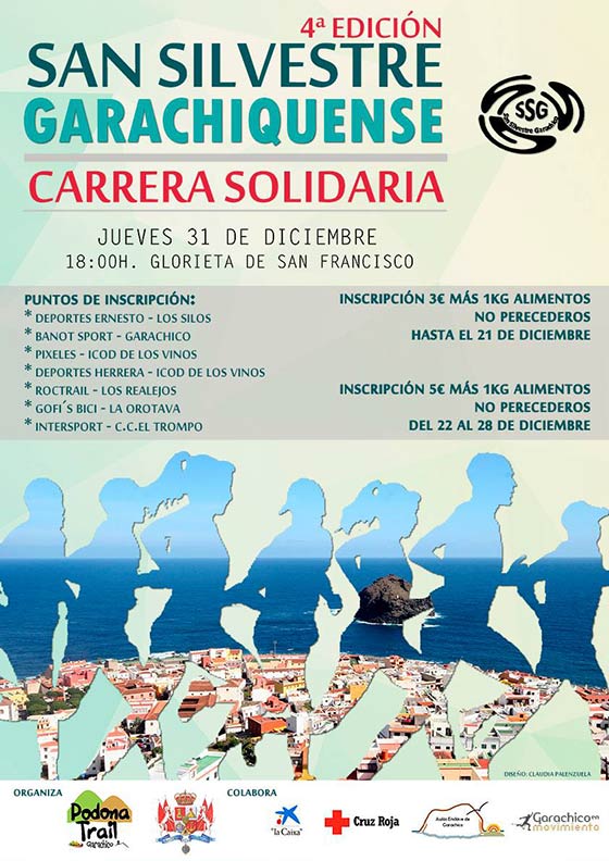 El club garachiquense de carreras por montaña, Podona Trail, y el Ayuntamiento de Garachico vuelven a unirse en la organización de esta prueba que ya se ha convertido en un clásico de la última jornada del año en Garachico. Cada año se superan el número de participantes, los kilos de comida recaudados y el ánimo de los inscritos por acudir a la prueba disfrazados y terminar el año corriendo de una manera divertida y no competitiva.