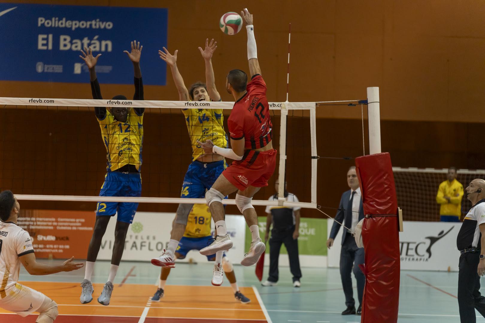 Precisamente los errores en el saque de los rojillos en su intento de poner en aprietos la recepción de los amarillos le pasaba factura a un San Roque que no conseguía igualar el ritmo infernal de sus vecinos que en un abrir y cerrar de ojos duplicaban su renta al cerrar Martín Ramos con un punto de ataque el segundo acto a su favor, colocando el 15-25 (0-2).