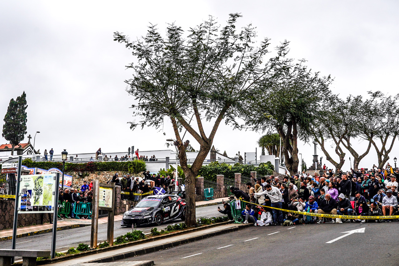 El piloto finlandés de Toyota Sami Pajari corrió menos suerte. En el TC12 Tejeda - San Mateo 2 perdió el control de su Toyota GR Yaris Rally 1 y golpeó las barreras, dejando bastantes daños en el frontal del coche y obligándole a decir adiós de forma prematura a la prueba.