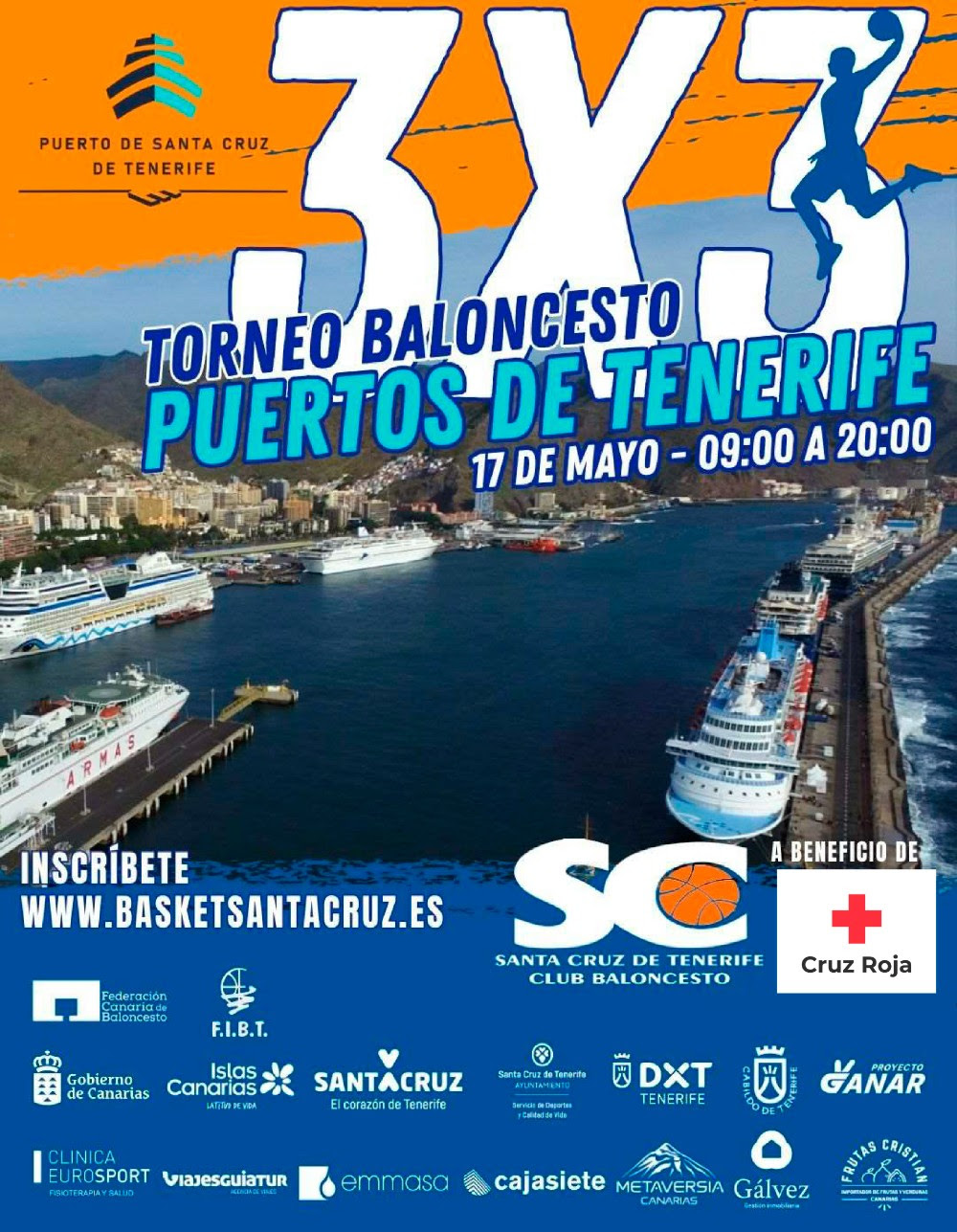 El Club Baloncesto Santa Cruz y la Autoridad Portuaria de Santa Cruz de Tenerife organizan con carácter benéfico a favor de Cruz Roja, la segunda edición del “Torneo 3x3 Puertos de Tenerife”, en el incomparable marco del Puerto de Santa Cruz de Tenerife, concretamente en los aledaños de la Plaza de España, este sábado día 17 de mayo desde las 9:00h hasta las 20:00h.