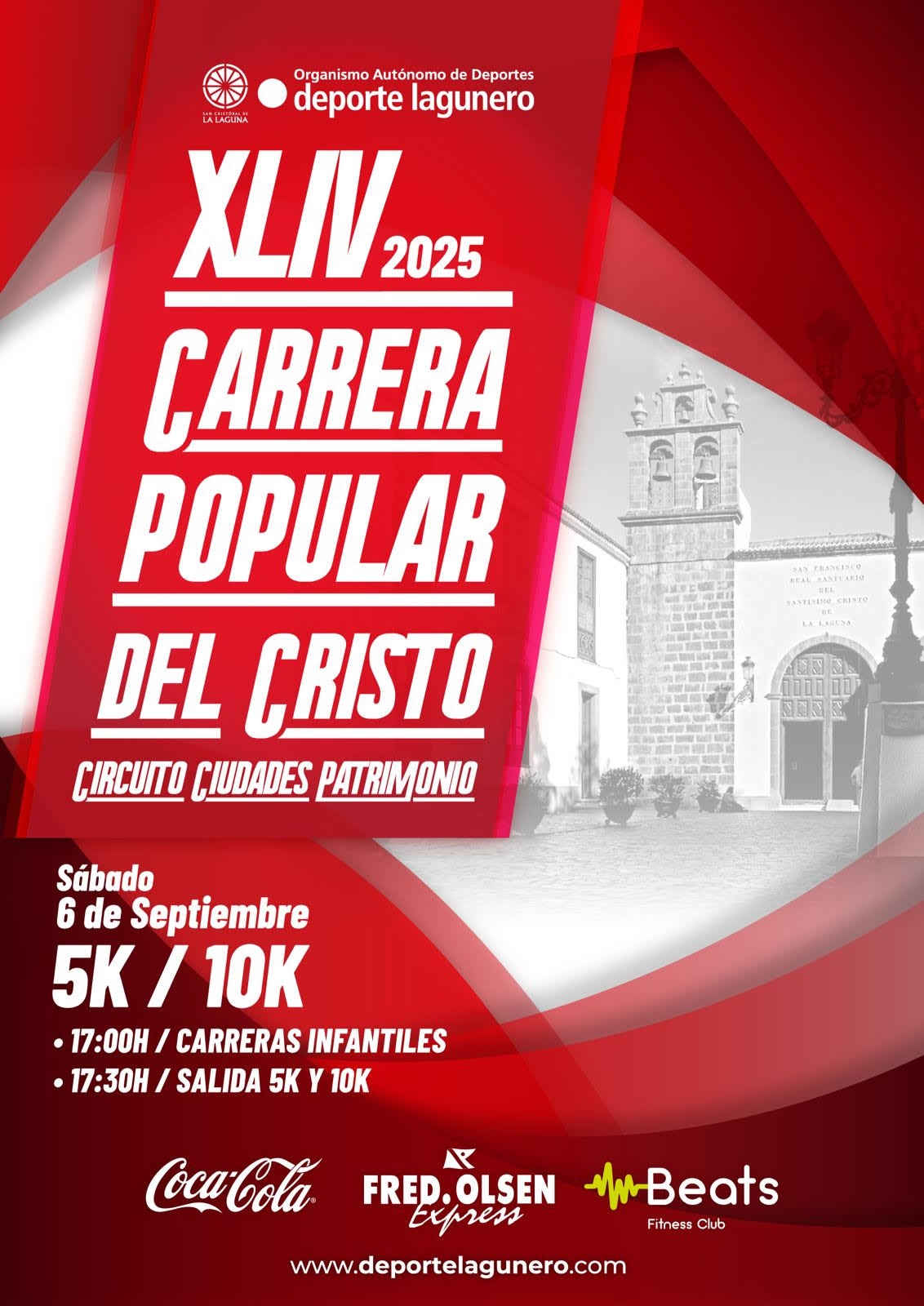 El Organismo Autónomo de Deportes (OAD) del Ayuntamiento de La Laguna, con la cooperación del Comité de Jueces de la Federación Canaria de Atletismo, organiza una de las citas más emblemáticas del calendario deportivo municipal. La XLIV Carrera Popular del Cristo se celebrará el próximo sábado 6 de septiembre, y formará parte del prestigioso Circuito de Carreras Ciudades Patrimonio de la Humanidad.