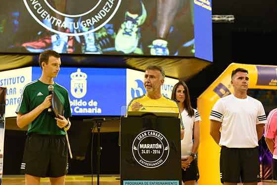 El consejero de Deportes del Cabildo de Gran Canaria, Ángel Víctor Torres, animó a todos los participantes a “buscar su grandeza” con nuevos retos en el próximo ‘Gran Canaria Maratón 2016’