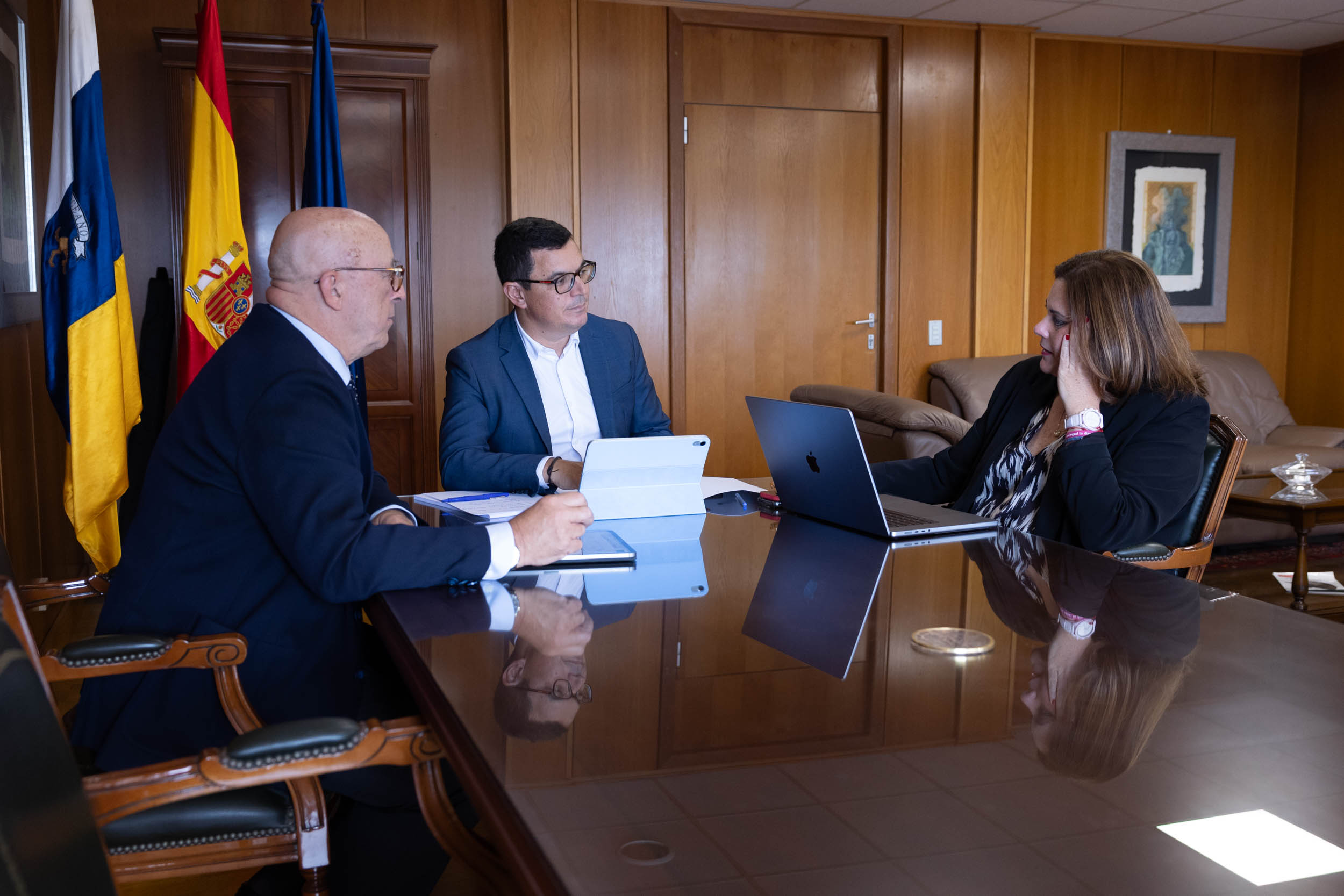 El consejero de Obras Públicas, Vivienda y Movilidad del Gobierno de Canarias, Pablo Rodríguez, ha mantenido un encuentro con la presidenta de la Autoridad Portuaria de Las Palmas, Beatriz Calzada, y el presidente de la Autoridad Portuaria de Santa Cruz de Tenerife, Pedro Suárez, para abordar las consecuencias de la aplicación del régimen de comercio de derechos de emisión de la Unión Europea (EU ETS) en el ámbito marítimo, y desarrollar una hoja de ruta que permita llegar a acuerdos, alcanzar exenciones para las islas y evitar una pérdida de competitividad de los puertos canarios.