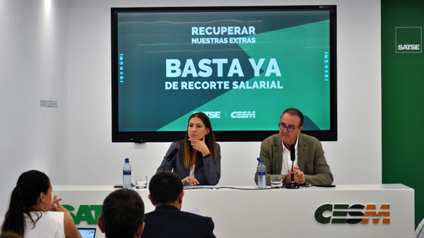 El secretario general de CESM, Víctor Pedrera, y la presidenta de SATSE, Laura Villaseñor, han explicado, en rueda de prensa, las perjudiciales consecuencias que tiene en los bolsillos de médicos, enfermeras y fisioterapeutas un recorte salarial “injustificado y discriminatorio” que contraviene lo establecido en el Estatuto Marco y en el Estatuto Básico del Empleado Público.