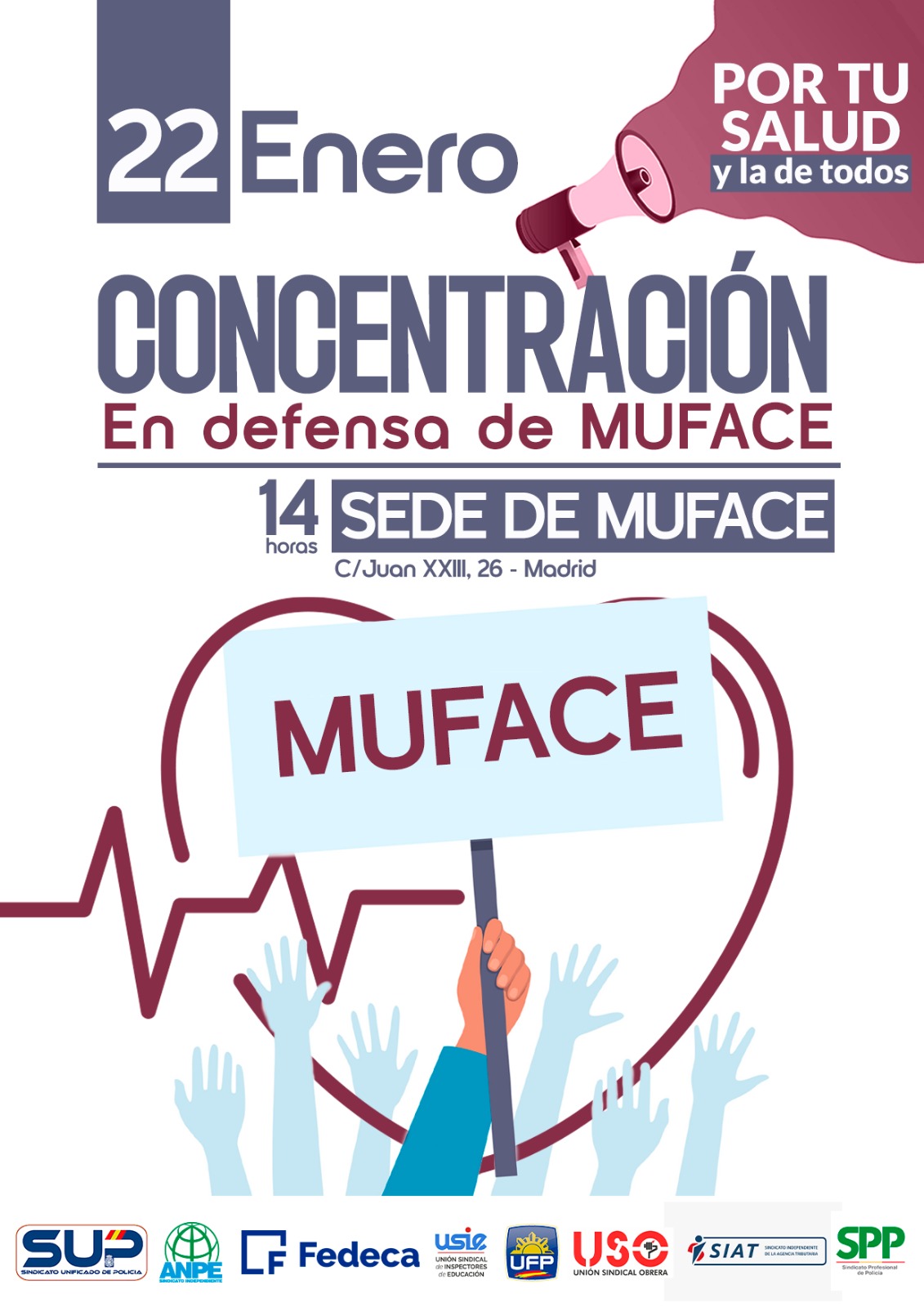 La movilización del próximo día 22 de enero, a las 14:00 horas, en Madrid, es una demostración de la unidad de los funcionarios civiles frente a lo que, sin ninguna duda, puede acarrear una crisis sin precedentes en la sanidad de todos los españoles.