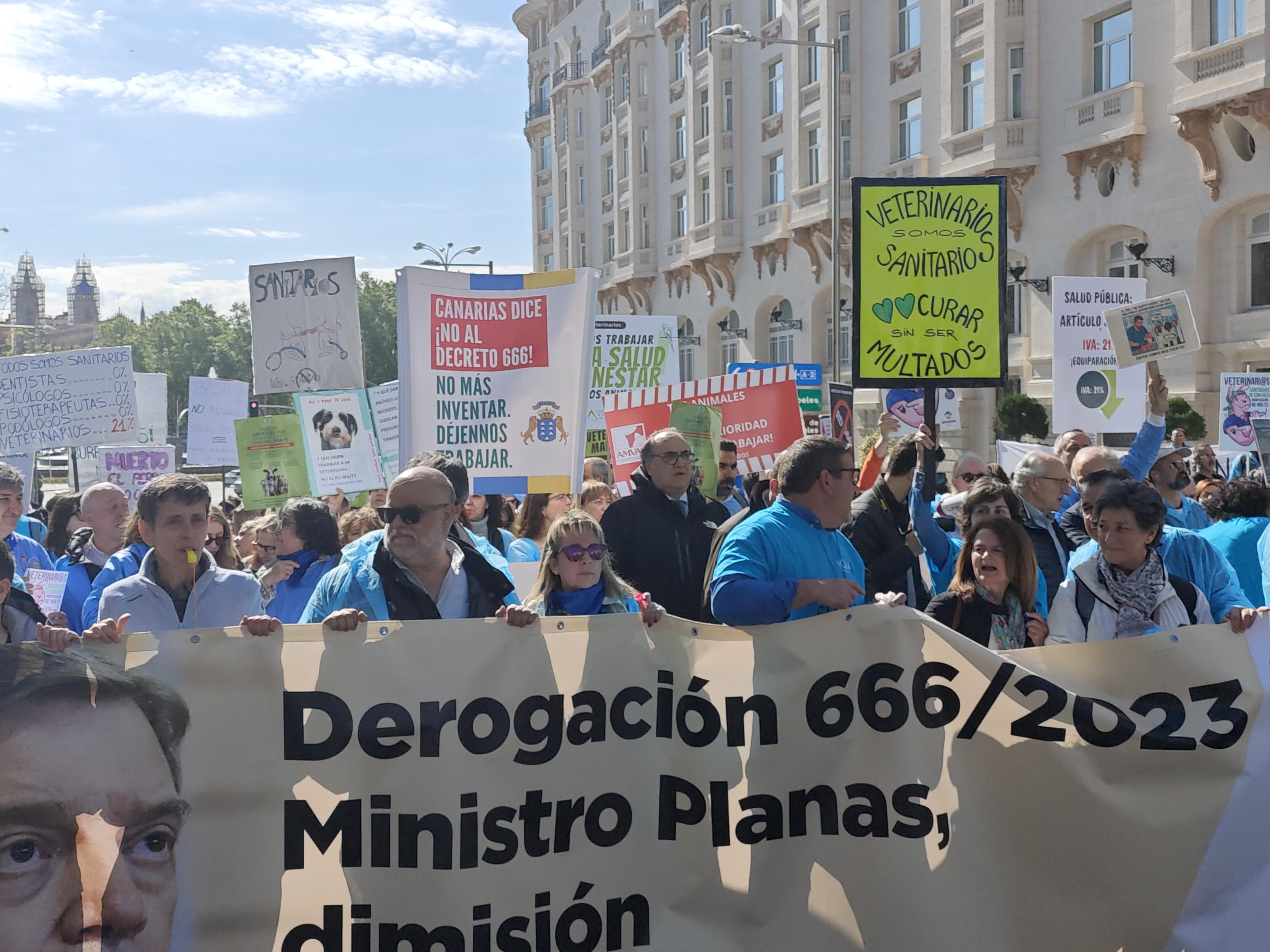 Veterinarios de toda España, también canarios, se concentran frente al Congreso para exigir la dimisión del Ministro de Agricultura