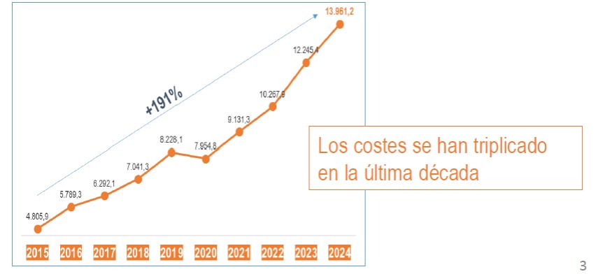 El absentismo laboral acarrea un elevado coste económico. Solo en 2024, el impacto directo para las arcas públicas superó los 15.000 millones de euros, cifra equivalente al 1 % del PIB español. Si se suman los costes empresariales derivados de sustituciones, menor productividad y gestión de las ausencias, el impacto total supera los 20.000 millones de euros.