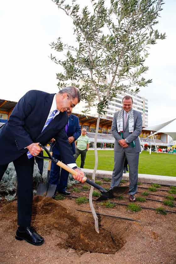 El embajador de Palestina en España, Musa Amer Odeh, fue en el encargado de agradecer al alcalde y a toda la ciudad, en nombre de todos los embajadores, el gesto de la plantación del olivo. “Estamos muy agradecidos por la hospitalidad de los canarios, ahora y siempre, porque la comunidad palestina lleva en esta tierra más de un siglo”, afirmó el embajador, “el olivo es un árbol de paz para los palestinos, y para todos los árabes, nuestro objetivo es la paz y trabajamos por ella, en nuestros países y en todo el mundo”.