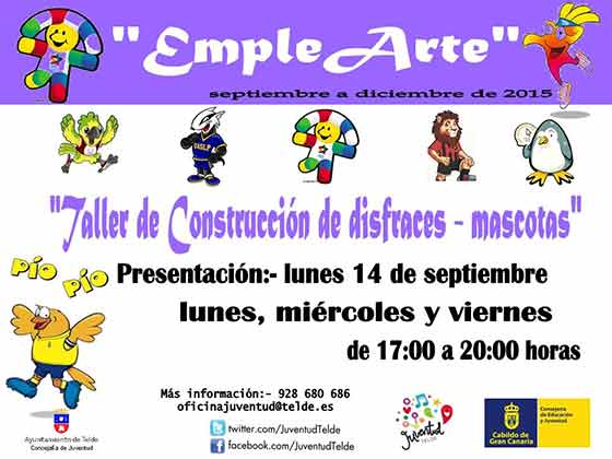 Quince jóvenes están participando estas semanas en un taller de construcción de disfraces-mascotas en la Casa de la Juventud gracias a una iniciativa de la Concejalía que dirige Marta Hernández y la colaboración del Cabildo de Gran Canaria, a través del programa Empleando el Ocio 2015 de la Consejería de Educación y Juventud.