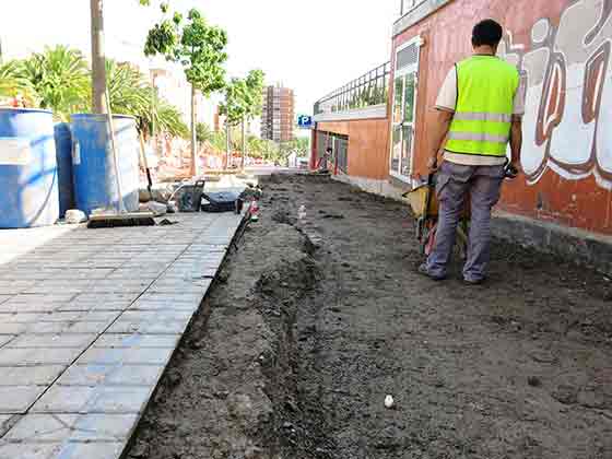 El Ayuntamiento de Las Palmas de Gran Canaria, a través de la sociedad municipal Sagulpa, acondiciona un tramo de acera en la calle Aconcagua, paralelo al aparcamiento del barrio de Casablanca III, que se había hundido en 2013 por deficiencias en la compactación del terreno y las filtraciones de agua.