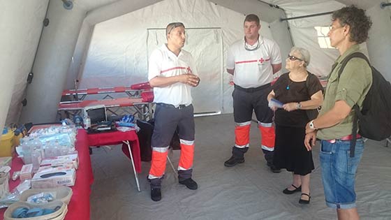 Ya sobre el terreno, el personal de San Bartolomé despliega en apenas media hora un operativo que incluye vehículos con soporte vital basico, soporte vital avanzado, un hospitalito y una carpa para que, rápidamente, las personas desembarcadas puedan asearse y cambiarse de ropa.