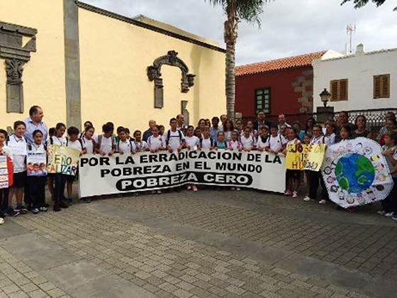 Los niños y niñas del CEIP Padre Collado en Telde se unen al Gobierno local en la concentración contra la pobreza