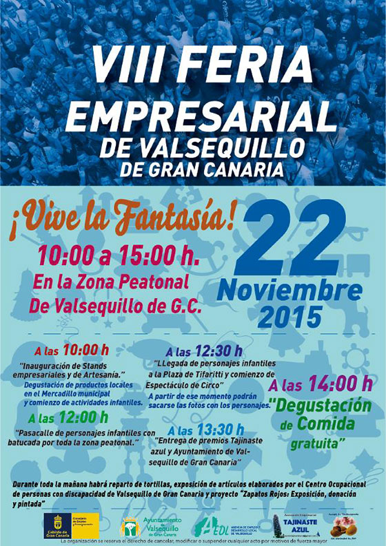 Bajo el eslogan “Vive la Fantasía” alrededor de 40 stands, entre empresas y artesanos, inundarán la zona peatonal de Valsequillo Casco. Entre las actividades que se llevarán a cabo figuran un pasacalle de personajes infantiles como los Minions o Frozen, con quiénes los niños podrán fotografiarse en un photocall habilitado para la ocasión. Una jornada donde también habrá un espectáculo de circo y degustación de comida gratuita a cargo de la Asociación de Amigos de Tenteniguada.