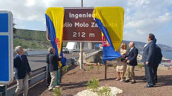 El Cabildo de Gran Canaria ha otorgado el nombre de Julio Molo Zabaleta al puente del Rincón para homenajear a este ingeniero de caminos por su fructífera trayectoria en beneficio del interés general y del desarrollo de la red viaria de la Isla, donde ayer se descubrió la placa en un emotivo acto colmado de sus enseñanzas.