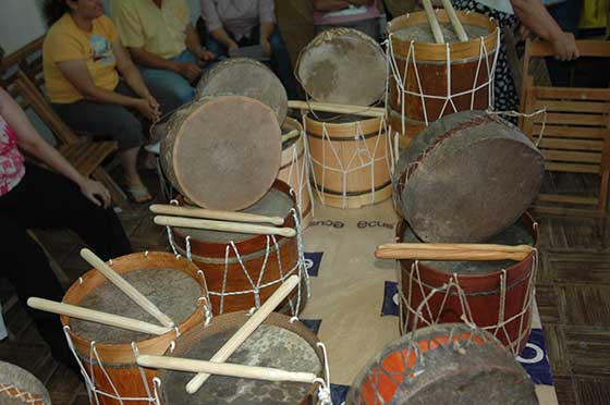 Al taller de construcción de tambores tradicionales se han apuntado miembros de grupos folclóricos y vecinos de Gáldar, por ser el municipio donde se celebra, y en él aprenden a confeccionar los aros del tambor, bien anchos o estrechos, a pelar y colocar la piel, así como a enhebrar la cuerda que rodea el instrumento y su tensado.