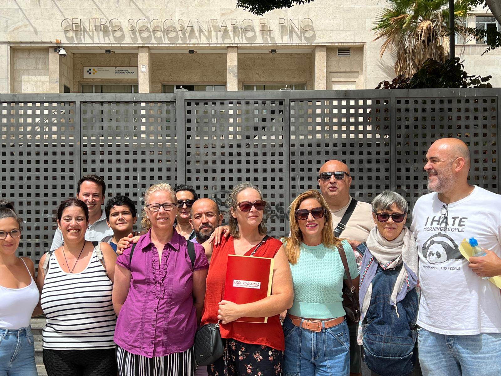 Aquí estamos por los trabajadores y las trabajadoras, por eso en primer lugar, en nombre de la Unión Sindical Obrera de Canarias, y seguro que también en nombre de la sociedad grancanaria, felicitamos a toda la plantilla del centro socio-sanitario El Pino, porque pese a los retrasos en el pago de sus salarios, pese a los incumplimientos de sus descansos, y pese a no contar con los medios materiales suficientes, realizan una gran labor profesional, y demuestran una gran humanidad, atendiendo de la mejor forma posible a personas dependientes, a nuestros mayores, compensando en parte el maltrato que reciben por la administración pública, debido a las decisiones de sus responsables políticos directos: la consejera delegada, Isabel Mena, y el presidente del Cabildo de Gran Canaria, Antonio Morales.